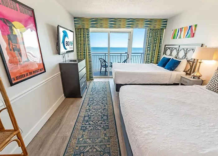 The beachfront 1Br Camelot Resort, Direct Oceanfront Views,Pools! Myrtle Beach is situated in Myrtle Beach, 12 minutes' walk from the Myrtle Beach SkyWheel, and offers spa amenities such as a hot tub. Nestled in the vicinity of the Captain Hooks Adventure Golf, this apartment offers a private pool with a patio.